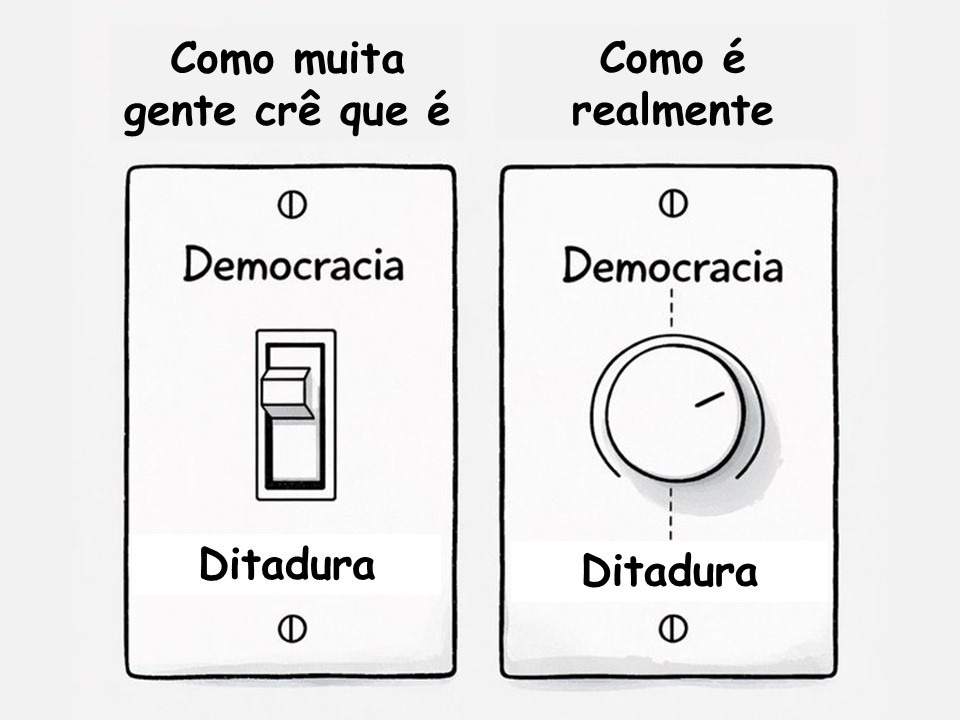 10 - E o que não se comenta, de jeito nenhum, é que não é só o golpismo que ameaça a democracia, mas também o hegemonismo de organizações políticas que não querem destruir as instituições e sim ocupá-las para colocá-las a serviço do seu projeto de poder. O populismo de esquerda (como o lulopetismo) ataca a democracia de um modo diferente do populismo de direita (como o bolsonarismo). Não quer dar golpe de Estado. Sua estratégia é conquistar hegemonia sobre a sociedade a partir do Estado aparelhado pelo partido para se delongar no governo por tempo suficiente para alterar, por dentro, o DNA da democracia, com dois propósitos: 1) substituir democracia por cidadania para "o povo" ofertada pelo líder populista. 2) promover a noção de soberania nacional como um valor acima da democracia como valor universal.