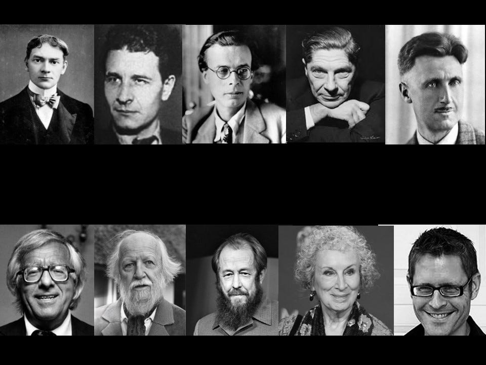 c) nas distopias ou ficções cognatas (como as de Jerome K. Jerome, Evgeni Zamyatin, Aldous Huxley, Arthur Koestler, George Orwell, Ray Bradbury, William Golding, Alexander Soljenítsin, Margaret Atwood, Daniel Wallace etc.) e, às vezes, nos grandes universos ficcionais (como os construídos por Isaac Asimov, Frank Herbert e Philip Dick).