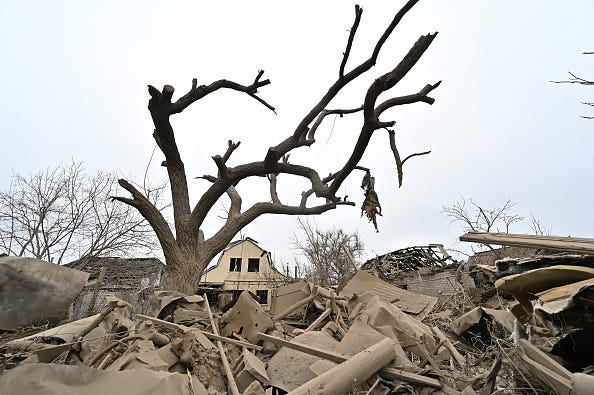 Do lado russo, observe a tentativa tipicamente dramática de ignorar a questão óbvia e fundamental: as reparações de guerra. Durante uma guerra completamente ilegal, a Rússia infligiu centenas de bilhões, ou mais provavelmente trilhões, de dólares em danos, sem mencionar quaisquer penalidades a serem pagas por todas as mutilações e mortes ilegais.