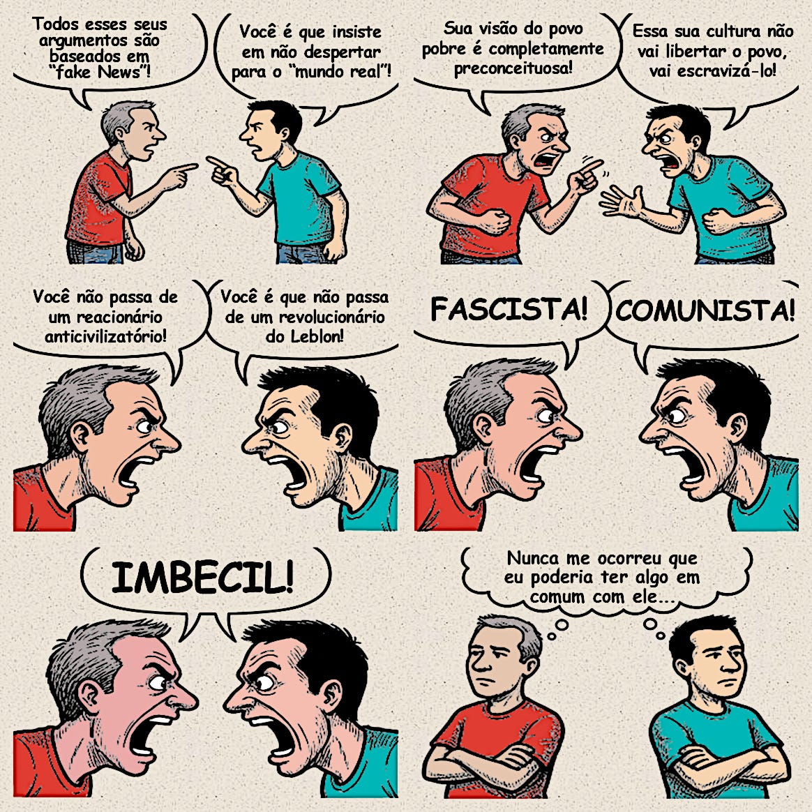 Releitura em parceria com o Gemini da charge “DAS RAÍZES DO RADICALISMO” do cartunista Quinho (@QuinhoCartum), de Maio de 2015. Original aqui.